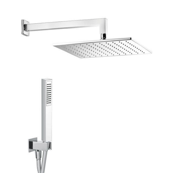 Kit doccia in ottone cromato QUADRATO, presa acqua con supporto, flessibile antitorsione