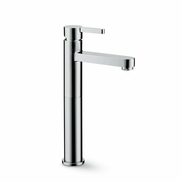 Miscelatore monocomando versione alta per lavabo da appoggio senza scarico.