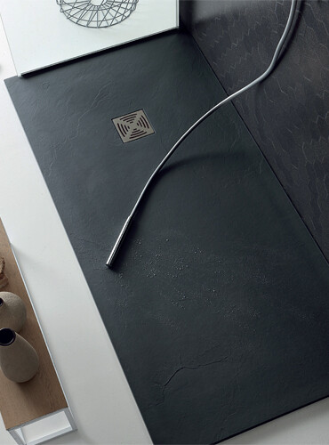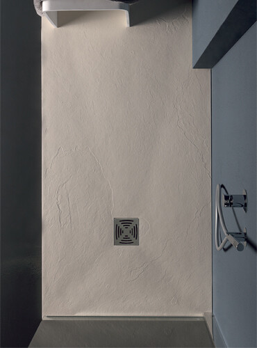 La resina miscelata con minerali garantisce elevate prestazioni tecniche e strutturali ed è ideale sia per ambienti interni che esterni. L’impasto è totalmente pigmentato all’interno e simile alla superficie del piatto doccia, antiscivolo con trama pietra.